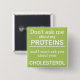 Dieser minimalistische Spaß-Button mit der Formulierung "frag mir nicht über meine Proteine und ich frag dir nichts über deinen Cholesterinspiegel" in weißer Schrift auf hellgrünem Hintergrund ist das ideale Geschenk für jeden veganen. Für individuelle Anfragen kontaktieren Sie mich bitte unter zolicestore@hotmail.com (bitte 1-2 Arbeitstage erlauben)