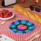 Die blaue Iris des Auges als Symbol für eine lebenslange Boje. Blaue Augen werden gerettet und helfen, und die Paper Teller werden Ihnen nicht gelassen, es zu vergessen. Geh Vegan!