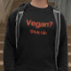 "Vegan? Halt die Klappe." Dieses lustige Sprichwort erzählt den Veganern auf nicht so subtile Weise, dass sie sich ärgern können, wenn sie darüber reden, vegan zu sein. Dieses anti-vegane Sprichwort ist nicht so sehr anti-vegan, wie es vegan gegen das Reden ist. Dieses anti-vegane Sprichwort macht einen lustigen T - Shirt, sowie einen lustigen Knopf, Magneten, Tasse oder ein anderes Geschenk für einen Mann oder eine Frau Allesfresser, der nicht will, von den Vorzügen des Veganismus zu hören.