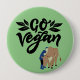 - "Geh Vegan!" Button mit dem Bild einer Person, die eine Kuh umarmt. Es ist eine schöne Bildsprache. Koordinationsgegenstände sind in meinem Geschäft verfügbar.
