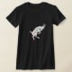 Veganer T - Shirt mit der niedlichen, glücklichen Ziegen-Silhouette, die für Freude springen und "veganem" geschrieben in Regenbogen färbte Buchstaben.