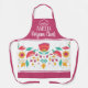 Moderne Vegane Koch Schürze in fuchsia Rose und Weiß, mit farbenfrohen Blume und roten Chili Paprikaschoten, und einem weißen Koch hat Silhouette. Einfach anpassbar, indem Sie Ihren Namen und Text hinzufügen.