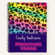 Farbenfrohe Notizbücher mit einem lebhaften Regenbogen-Leopardenprint. Die Formulierung auf der lila unteren Band lautet "Ferocious Vegan" in pink alle Kaps Schriftart