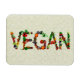 Gemüse formt die Buchstaben zu dem Wort "Vegan" für eine farbenfrohe und hübsche Art, Ihre Praxis und Unterstützung eines Veganen Lebensstils anzukündigen.
