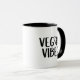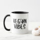 Diese "Vegane Tasse" zeigt ein Herz mit einem Blatt und einem schwarzen Zitat.