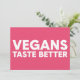 Diese Grafik zeichnet sich durch fett rosa Typografie aus, in der "VEGANS TASTE BESTER" hervorgehoben wird. Das Design setzt einen modernen, auffälligen Schriftart ein, der die positive Botschaft des Veganismus betont. Das helle Farbschema und der kräftige Text schaffen ein visuelles und ansprechendes Ambiente für alle, die den Lebensstil der Pflanze schätzen oder fördern. Dieses Stück kann als Slogan für eine vegane Kampagne, ein Restaurant oder eine Sensibilisierungsinitiative dienen