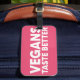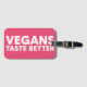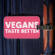 Diese Grafik zeichnet sich durch fett rosa Typografie aus, in der "VEGANS TASTE BESTER" hervorgehoben wird. Das Design setzt einen modernen, auffälligen Schriftart ein, der die positive Botschaft des Veganismus betont. Das helle Farbschema und der kräftige Text schaffen ein visuelles und ansprechendes Ambiente für alle, die den Lebensstil der Pflanze schätzen oder fördern. Dieses Stück kann als Slogan für eine vegane Kampagne, ein Restaurant oder eine Sensibilisierungsinitiative dienen
