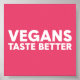 Diese Grafik zeichnet sich durch fett rosa Typografie aus, in der "VEGANS TASTE BESTER" hervorgehoben wird. Das Design setzt einen modernen, auffälligen Schriftart ein, der die positive Botschaft des Veganismus betont. Das helle Farbschema und der kräftige Text schaffen ein visuelles und ansprechendes Ambiente für alle, die den Lebensstil der Pflanze schätzen oder fördern. Dieses Stück kann als Slogan für eine vegane Kampagne, ein Restaurant oder eine Sensibilisierungsinitiative dienen