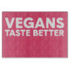 Diese Grafik zeichnet sich durch fett rosa Typografie aus, in der "VEGANS TASTE BESTER" hervorgehoben wird. Das Design setzt einen modernen, auffälligen Schriftart ein, der die positive Botschaft des Veganismus betont. Das helle Farbschema und der kräftige Text schaffen ein visuelles und ansprechendes Ambiente für alle, die den Lebensstil der Pflanze schätzen oder fördern. Dieses Stück kann als Slogan für eine vegane Kampagne, ein Restaurant oder eine Sensibilisierungsinitiative dienen