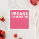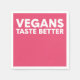 Diese Grafik zeichnet sich durch fett rosa Typografie aus, in der "VEGANS TASTE BESTER" hervorgehoben wird. Das Design setzt einen modernen, auffälligen Schriftart ein, der die positive Botschaft des Veganismus betont. Das helle Farbschema und der kräftige Text schaffen ein visuelles und ansprechendes Ambiente für alle, die den Lebensstil der Pflanze schätzen oder fördern. Dieses Stück kann als Slogan für eine vegane Kampagne, ein Restaurant oder eine Sensibilisierungsinitiative dienen