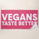 Diese Grafik zeichnet sich durch fett rosa Typografie aus, in der "VEGANS TASTE BESTER" hervorgehoben wird. Das Design setzt einen modernen, auffälligen Schriftart ein, der die positive Botschaft des Veganismus betont. Das helle Farbschema und der kräftige Text schaffen ein visuelles und ansprechendes Ambiente für alle, die den Lebensstil der Pflanze schätzen oder fördern. Dieses Stück kann als Slogan für eine vegane Kampagne, ein Restaurant oder eine Sensibilisierungsinitiative dienen