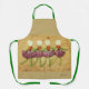 Eine skurrile Schürze mit einer Chorreihe von Bohnen in Hibiskus Röcke tanzen über einen Metzgerblock.