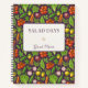 Plum spiral notebook with ivory title panel reading ‘Salad Days & Good Cheer,’ bordered in plum, with watercolor tomatoes, onions, carrots, lettuce and herbs