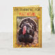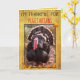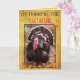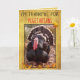 Mein Foto von unserem Haustier Truthahn, Goondah, wünscht ein glückliches Thanksgiving mit einem vegetarischen Thema. Auf der Vorderseite der Karte steht mein Putenholz-Foto und steht: "Ich bin Vegetarier dankbar" auf goldenem Tonhölzern mit einer Sprinklerei an Herbstlauben. Das Interieur der Karte ist ein passendes Leichtgold mit dem Wunsch "Glückliches Erntedankfest", Kürbis und Blätter. Kann auf Wunsch personalisiert werden. Eine großartige Alternative für die Vegetarier, die Sie kennen!