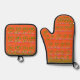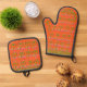 Veggie-Truthühner und Sonnenblumen, orange Ofenhandschuh & Topflappen-Set