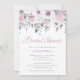 Watercolor Eigenschaft dieser erröten schöner Brautpartyeinladungen, weiche lila und weiße Blumen mit viel des botanischen Blätter und der eleganten hellpurpurnen Kalligraphie.