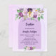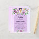 Ein violetter, lavendigerer, wasserfarbener Hintergrund. Mit violetten und lila Blume im Wasser und einem goldenen Kreuz dekoriert. Personalisieren und den Namen und die Empfang Details. 1 Blatt = 1 Einladung mit Druckkante bis Kante.