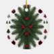 Make your Christmas tree pop with this Velvet Red & Green Starburst Ceramic Ornament. The design features a bold, geometric pine arrangement at its heart, beautifully highlighted by deep red velvet poinsettias and surrounding velvet ornaments. This piece perfectly merges classic holiday colors with a sleek, Modern Minimalistic structure, moving beyond the usual festive patterns. It's a premium, high-impact ornament ideal for decorating your own tree, or as a luxurious gift. Tag it as the perfect First Christmas Married or Baby’s First Christmas keepsake due to its timeless yet contemporary feel.