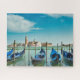A wonderful view of Venice (Italy) and the Grand Canal with its blue elegant Gondolas, the famous boats that are one of the most iconic Venetian symbos