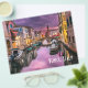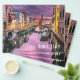 Ein horizontaler Flyer mit einer wunderschönen landschaftlichen Landschaft Foto eines Kanals in Venedig, Italien. Mit dunklen lila Wolken sieht es aus, als würde ein Sturm kommen. Große Vereinnahmung der einzigartigen venezianischen Architektur und der Wasserreflexion. Der Text ist individuell einstellbar: Venedig, Italien mit einem kleinen Herz über den Worten.