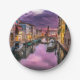 Teller mit einem schönen landschaftlichen Foto eines Kanals in Venedig, Italien. Mit dunklen lila Wolken sieht es aus, als würde ein Sturm kommen. Große Vereinnahmung der einzigartigen venezianischen Architektur und der Wasserreflexion.