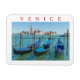 Ein wunderschöner Ausblick auf drei Gondeln in Venedig in Italien mit der Insel San Giorgio Maggiore im Hintergrund gedruckt auf einem Souvenir-Kühlschrankmagnet.