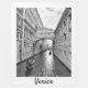 Eine wunderschöne schwarz-weiße Aussicht auf Venedig (Italien) und die Seufzerbrücke. In dieser Decke sieht man zwei der berühmtesten Symbole Venedigs: einen Gondoliriker, der in der Nähe der ikonischen Seufzerbrücke rudert, oder die italienische Ponte dei Sospiri.