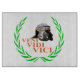 Antiker römischer Militärhelm aus Kupfer-Metall. Text Veni, Vidi, Vici. Zeichn eines grünen Lorbeerkranzes. Horizontale Andenken und Geschenke. Schneidebrett