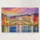 Berühmtes Ponte Rialto in Venedig Nacht Skyline - Puzzle mit der romantischsten Stadt Italiens, Venezia.