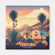Schauen Sie sich die Palmen, Berge und Sonnenuntergang in Ventura an der Küste Südkaliforniens an.