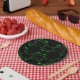 Ungewöhnliche Papiertafel aus Party mit einem exzentrischen Venus-Fliegenmuster in Schwarz und Grün.