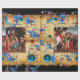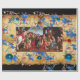 Farbenfrohe und magische Atmosphäre der Weihnachtszeit durch den italienischen Maler Raffaello Sanzio (Raphael) ,Oddi Althar .Elegantes, klassisches, helles und fröhliches Weihnachtsdesign auf Pergament mit antiken Florentiner Blumenmotiven und einem glänzenden 3D-blauen Saphire und roten Ruby-Edelsteinen .