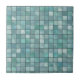 Grafischer Entwurf der veränderten aquamarinen farbigen dekorativen Fliesen für ein strukturiertes Duoton Muster der wiederholten quadratischen Formen.