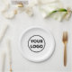 Organisieren Sie eine Firmenveranstaltung mit Papier-Tellern, die Ihr Firmenlogo kühn präsentieren, um Ihr Marketing zu erweitern. Ersetzen Sie das Beispiellogo durch Ihr eigenes in der Sidebar. Ihr Logo kann in Farbe oder schwarz-weiß sein. Es kann kreisförmig, quadratisch oder in einer anderen Form sein. Digitales Bild. Copyright ©Claire E. Skinner. Alle Rechte vorbehalten.