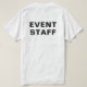 Mit diesen schlichten und stilvollen "Event Staff"-Shirts, die auf Vorder- und Rückseite mit unkontrolliertem Klartext bespielen, macht es Ihrer Event-Crew leicht, sich in der Menge zu behaupten. Text kann bearbeitet werden, damit Sie Wörter ändern oder hinzufügen können.