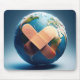 Ein Globus mit zwei großen Klebebinden, die über ihn ragen, symbolisiert die Heilung oder den Schutz der Erde