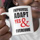 Stilvolle IMPROV Christliche Tasse mit dem Wortlaut, dass IMPROVISE ADAPT YES & OVERCOME, die eine Kombination aus einer beliebten motivierend Phrase und der "Yes And", die die Hauptregel der Verbesserung ist. Ideal motivierend für Leute, die auch Improvisationstheater Liebe haben oder Komiker sind. Das Design zeichnet sich durch fett-solide schwarz-rote Typografie aus. In der Mitte befindet sich ein CHRISTLICHER CUSTOMIZABLE-TEXT, der auf den Philippinen 4:13 basiert und gut zu diesem inspirierenden Zitat passt. Sie können diesen Text mit Ihrem bevorzugten Text, z.B. Name, Tribut, lustige Nachricht PERSONALISIEREN. Auch passende Geschenke sind erhältlich.