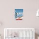 Feiern Sie mit dieser Postkarte den Zauber der Schweizer Alpen. Mit Skifahrern, schneebedeckten Gipfeln und einer gemütlichen Hütte erinnert diese Vintage Illustration an den Nervenkitzel des Wintersports und der alpinen Schönheit. Ideal für Bergfreunde und Skifans.
