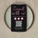 Connect with US QR Code Social Media Logo Pink Machen Sie es einfach für Kunden, sich online mit Ihnen zu verbinden mit einer lebendigen rosa Visitenkarte mit Ihren Social Media Icons und einem skalierbaren QR Code.