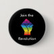 Zeigen Sie Ihren Stolz mit unserem fantastischen Knopf, der unser Regenbogenfaustlogo und -Staaten kennzeichnet, "sich anschließen der Revolution".
