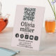 Mit diesem stilvollen Podestschild mit der Meldung "Connect with us" und dem scannbaren QR-Code steigern Sie die Sichtbarkeit Ihrer Marke. Ideal für Tops, Veranstaltungen, Salons, Cafés und Empfang-Bereiche - damit Sie von den Kunden online verfolgt werden können oder in Sekunden auf Ihre Website zugreifen können! Sleek, beruflich und ganz auf Trend.