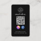 Eine einfache, fett angepasste schwarze Geschäftsscan, um mit uns auf Instagram und Facebook QR Code Visitenkarten in einem modernen minimalistischen Stil zu verbinden. Die vielseitige Vorlage kann leicht mit Ihrem Firmenlogo, Grafik oder Foto, QR-Code, benutzerdefinierten Text und Social Media Icons (Facebook & Instagram) aktualisiert werden. Die Icons lassen sich einfach durch eigene ersetzen, um ein wirklich berufliches Design für Ihr eigenes Unternehmen zu schaffen! Sie können z.B. andere Social-Media-Konten wie z.B. Twitter, Linkedin, WhatsApp, YouTube usw. einbinden.