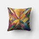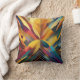 In der Mitte konvergiert eine lebhafte Reihe gewagter geometrischer Formen, die eine symmetrische und farbenfrohe Zusammensetzung bilden. Das Stück verwendet eine Vielzahl von Farbtönen, von warmen Gelbtönen und Orangen bis hin zu cooler Blues und Purpur.