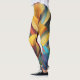 In der Mitte konvergiert eine lebhafte Reihe gewagter geometrischer Formen, die eine symmetrische und farbenfrohe Zusammensetzung bilden. Das Stück verwendet eine Vielzahl von Farbtönen, von warmen Gelbtönen und Orangen bis hin zu cooler Blues und Purpur.