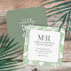 Dieses Design verfügt über eine einfache Visitenkartenvorlage mit einem modernen, beruflichen, minimalistischen Look, minimalen, eleganten Social Media Icons, einen trendigen, schlicht scannbaren QR-Code, ein schicke Foto mit digitalem Kontakt, ein E-Mail-Zell-Icon, ein schlichtes Schwarz-Weiß-Design, elegant minimalistisch Design Stilelemente, Foto oder Grafik, zeitgenössischer, modernem, mit tropischen botanischem Stil und grünen Palmen Blätter.