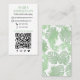 Dieses Design verfügt über eine einfache Visitenkartenvorlage mit einem modernen, beruflichen, minimalistischen Look, minimalen, eleganten Social Media Icons, einen trendigen, schlicht scannbaren QR-Code, einen schicken digitalen Kontakt, ein E-Mail-Webseiten-Icon, ein schlichtes Schwarz-Weiß, elegant minimalistisches Design, Foto- oder Grafikvorlage, zeitgenössisch sauberen, modernen Stil mit tropischen botanischen grünen Palmen Blätter Blattwerk