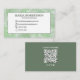 Dieses Design verfügt über eine einfache Visitenkartenvorlage mit einem modernen, beruflichen, minimalistischen Look, minimalen, eleganten Social Media Icons, einen trendigen, schlicht scannbaren QR-Code, einen schicken digitalen Kontakt, ein E-Mail-Webseiten-Icon, ein schlichtes Schwarz-Weiß, elegant minimalistisches Design, Foto- oder Grafikvorlage, zeitgenössisch sauberen, modernen Stil mit tropischen botanischen grünen Palmen Blätter Blattwerk