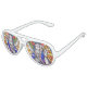 Verbleibendes Glasdesign mit religiöser Abbildung. Partybrille