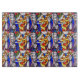Helles und farbenprächtiges Glasdesign in wiederholtem Muster mit religiöser Abbildung.