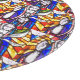 Kirchenfenster Bright und farbenfroh gestanztes Glas Design in einem wiederholten Muster mit religiöser Abbildung.